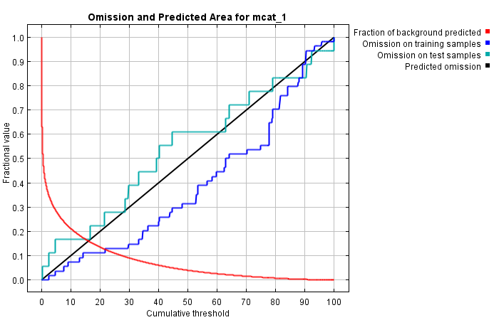 | Cumulative threshold | Cloglog threshold | Description | Fractional predicted area | Training omission rate | Test omission rate | P-value |