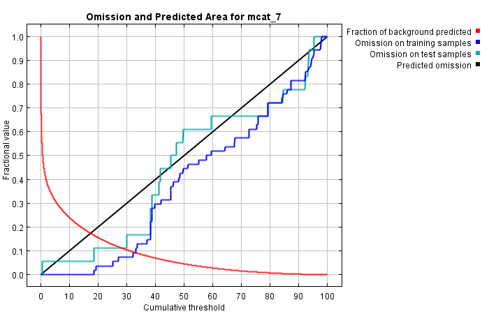 | Cumulative threshold | Cloglog threshold | Description | Fractional predicted area | Training omission rate | Test omission rate | P-value |